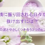 2025年1月3日 / 最終更新日 : 2025年7月29日 阿部 朝子 はじめての方へ・おすすめ記事 感情に振り回される日々から抜け出すには?──“心の波”とやさしくつき合う3つのヒント ふとしたことでイライラしたり、落ち込んだり、不安になったり… そんな自分に疲れてしまうことはありませんか? 「気にしすぎだよ」「もっと前向きに考えたらいいよ」 そう言われても、気持ちをうまく切り替えられない。むしろ、切り […]